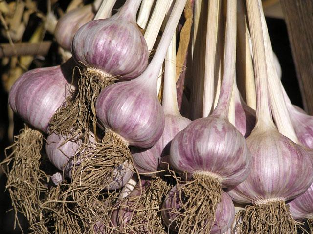 - Pour le séchage, certains jardiniers attachent l'ail en grappes et l'accrochent sous le toit d'un hangar ou d'une autre buanderie.