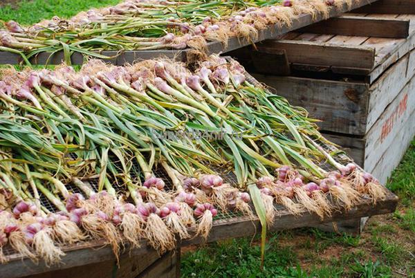 Après la fin des travaux, l'ail est envoyé dans une pièce fraîche avec une bonne ventilation pendant 2 semaines supplémentaires, puis il est stocké.
