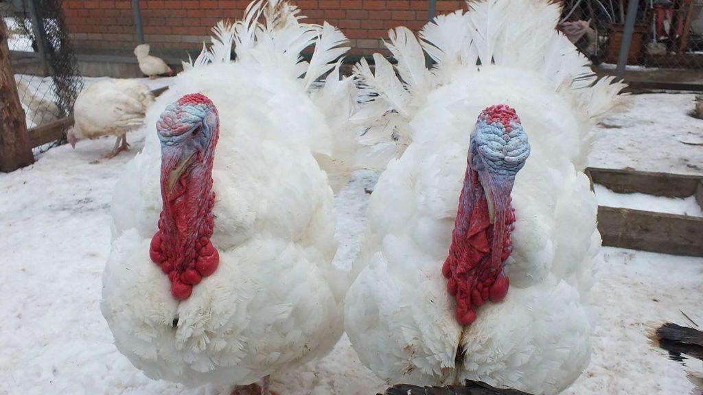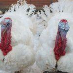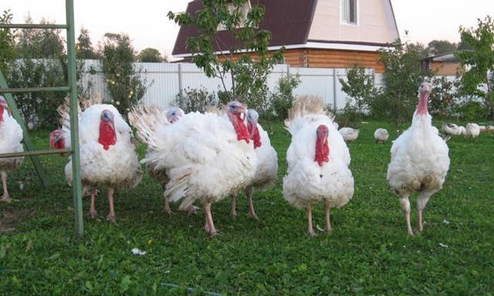 Eine der beliebtesten Arten schwerer Putenkreuze im Alter von 4 Monaten wiegt bereits 20 Kilogramm, Frauen - etwa 11. Fleisch hat gute Eigenschaften, der Fettanteil beträgt nur 8%. Die Eierproduktionsraten sind durchschnittlich - 100 Stück pro Jahr.