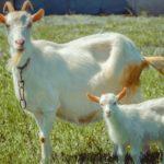 Russische weiße Ziegen haben Ohrringe. Tiere mit weißem Haar, universeller Zweck - geben Sie Milch, Fleisch, Flusen, dünne Haut. Frauen sind fruchtbar - sie können 3-4 Kinder in jedes Lamm bringen.