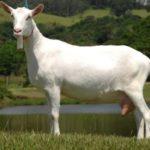 Die Hälse der berühmten Saanen-Ziegen sind ebenfalls mit Ohrringen verziert. Die Tiere sind groß, weiß, hornlos, mit feinem Haar und anmutigem Körperbau. Sie zeichnen sich durch Langzeitlaktation aus, ergeben eine Rekordmenge Milch mit einem hervorragenden Geschmack. Alpenrasse, die auch eine hohe Milchleistung und eine fast kontinuierliche Laktation aufweist. Die Ziegen sind fruchtbar und können bei jeder Geburt 4 Kinder zeugen. Widersteht rauen klimatischen Bedingungen.