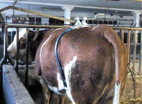 Das Gerät hält die Kuh während des Melkens ruhig. Es gibt zwei Arten von Geräten: