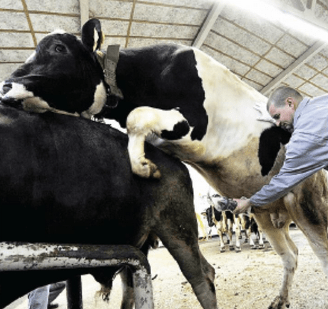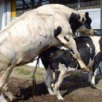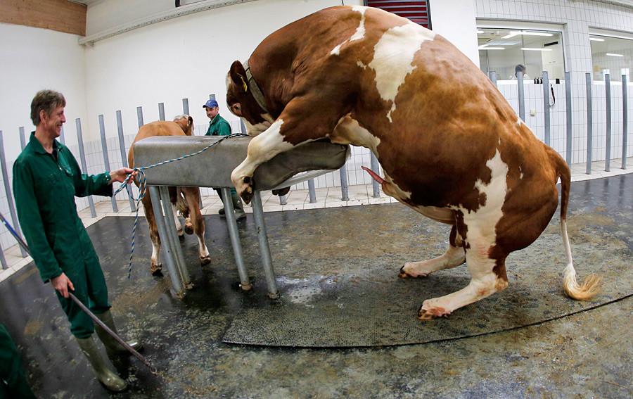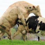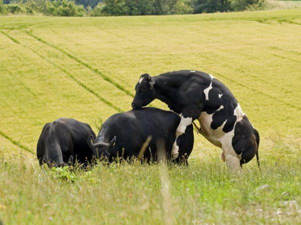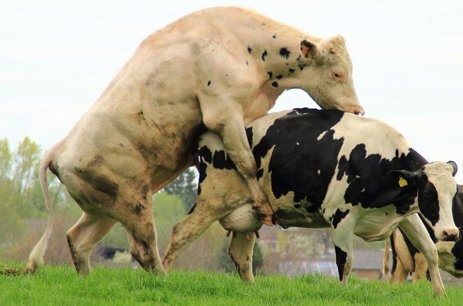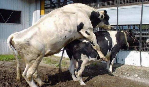 Zur Paarung wird eine spezielle Maschine gekauft, auf die der Bulle seine Vorderbeine legt. Dann werden die Kühe, die die Pubertät erreicht haben, zum Tier gebracht.