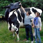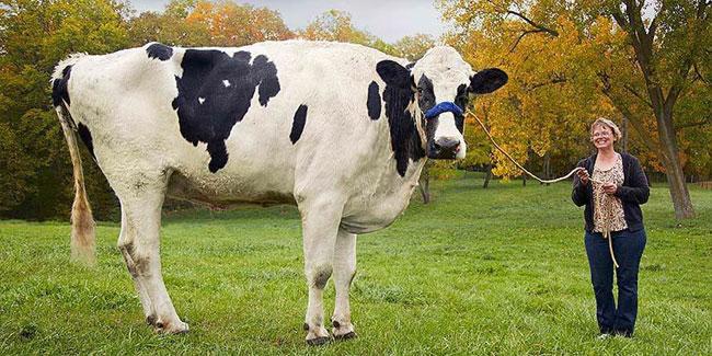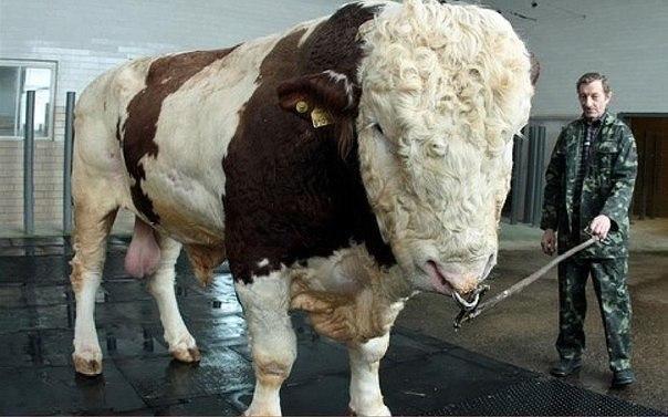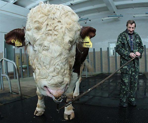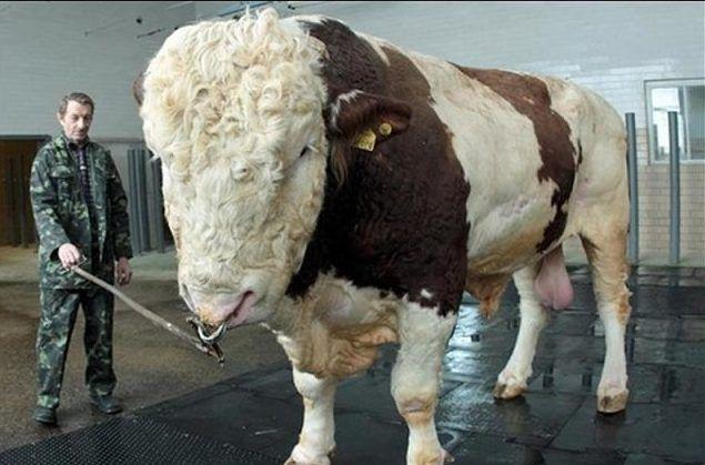 Ein weiteres Mitglied der inoffiziellen Bewertung von Giganten ist der aus Großbritannien stammende Trigger-Bulle. Der Vertreter der Freesianischen Rasse wiegt 1,2 Tonnen und das Tier erreicht eine Höhe von fast 2 Metern. Und obwohl das Tier nicht aggressiv ist und eine ruhige Einstellung hat, wurden seine Hörner abgeschnitten. Diese Maßnahme soll die Sicherheit von Touristen gewährleisten, die gerne mit dem starken Mann im Hintergrund fotografiert werden.