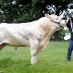 Der Bullenfeldmarschall wird der Stolz Englands genannt. Ein großartiges Exemplar der Sherole-Rasse wiegt jedes Jahr 150 Kilogramm an Gewicht und hat bereits die Marke von 1,5 Tonnen überschritten. Das erschreckende Aussehen erschreckt den Besitzer nicht, der den Riesen als ruhiges und friedliches Tier betrachtet und ihm sogar Hörner hinterlässt.