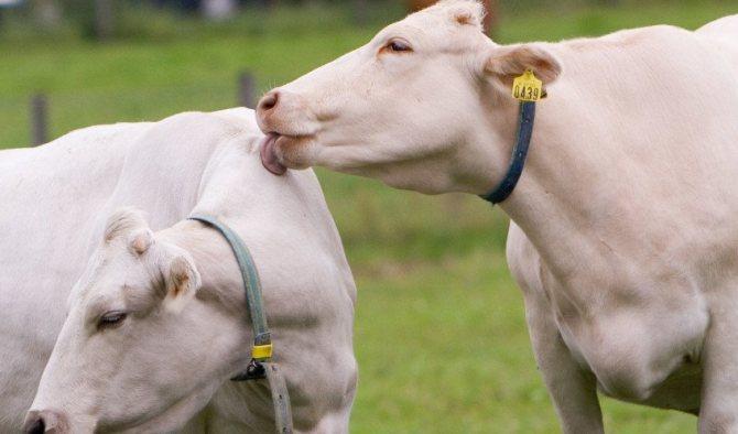 Wichtig! Der unverkennbarste Weg, eine Kuh für die Paarung vorzubereiten, sind Testbullen. Wenn die Färse zu fließen beginnt, reagieren sie scharf auf ihren Geruch und beginnen sie zu "pflegen". Das Verhalten einer Kuh bei der Jagd ändert sich - sie interessiert sich für Bullen, steht unbeweglich vor ihnen und biegt den Rücken.