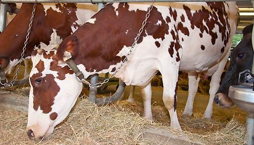 Wenn sich die Kühe in einem Stall befinden, wird vorne ein Becken für das Futter installiert. Wenn sich das Vieh frei im Stall bewegt, werden die Futtertröge so montiert, dass die Tiere sie nicht versehentlich umkippen.