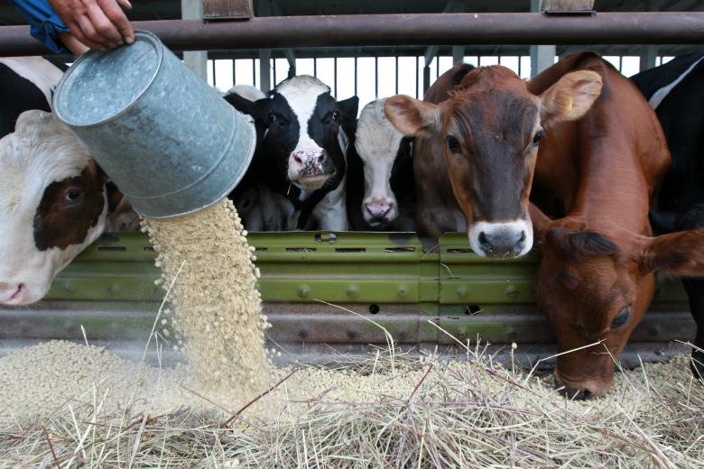 Damit die Tiere gut und viel fressen können, wird 2-3 mal am Tag Futter gegeben. Die Diät sollte Gemüse, Konzentrate und hochwertiges Heu enthalten. Das Gleichgewicht von Vitaminen und Mineralstoffen wird nach der Leistung der Kuh und nach den Empfehlungen des Tierarztes ausgewählt.