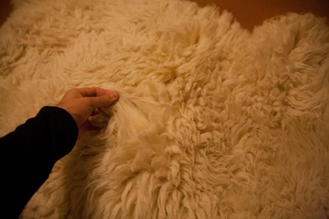 Schafsfelle werden häufig für die Innenausstattung verwendet. Schaffell Teppiche liegen auf dem Boden vor dem Bett, im Badezimmer, im Kinderzimmer. Es ist auch üblich, Schaffell zum Nähen von Westen, hohen Pelzstiefeln oder Hüten zu verwenden.