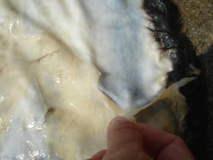 Das Ergebnis des Fleischens ist, dass die Haut von Haut und Fett befreit wird. Legen Sie die Haut auf der Maschine oder auf einer ebenen Fläche aus und beginnen Sie, sie mit der stumpfen Seite des Messers von unten nach oben zu reinigen. Es ist verboten, scharfe Gegenstände als Fleischwerkzeug zu verwenden, um die Haut nicht zu durchbohren. Fleischigkeit erfordert bestimmte Fähigkeiten und Geschicklichkeit.