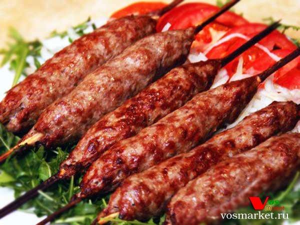 Ziegenfleisch muss von Fett, Filmen, fein gehackt (mit einem Fleischwolf gehackt), gemischt mit Schmalz und Zwiebeln gereinigt werden - wie bei der Zubereitung von Hackfleisch für Schnitzel. Vergessen Sie nicht die Gewürze, sie sind die Basis des Kebab. Aus der Mischung werden Würste geformt, die dann auf Holzstäbchen gepflanzt werden müssen.