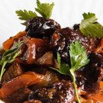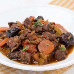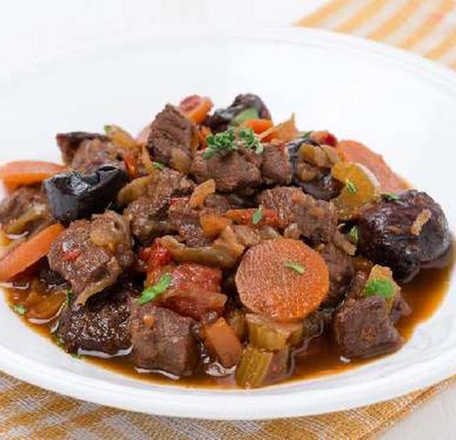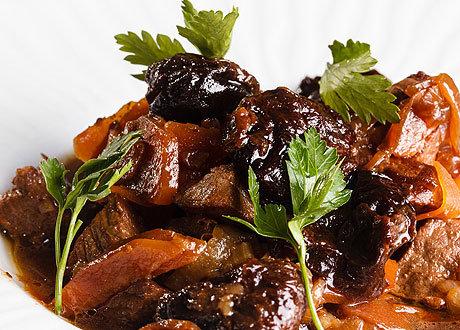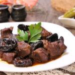 Fügen Sie auch Zucker, Essig, Zimt, Nelken hinzu. Vorgebratenes Ziegenfleisch wird in einen geeigneten Topf (Eintopf) gegeben, mit Zwiebeln, Tomatenmark gemischt und in der Brühe gedünstet, die nach dem Kochen des Ziegenfleisches übrig bleibt. Dann fügen sie Pflaumen, Mehl und andere Gewürze hinzu und halten sie bei schwacher Hitze, bis sie vollständig gekocht sind.