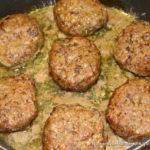 Die Kebab-Rohlinge werden in einer Pfanne goldbraun gebraten und gelegentlich umgedreht.