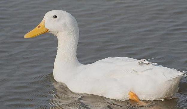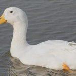 Kirschvelli unterscheidet sich optisch kaum von Pekingenten. Sie erkennen sie an ihrem reinweißen Gefieder, dem großen Körper mit der entwickelten Brust. Die Hauptmerkmale der Rasse: