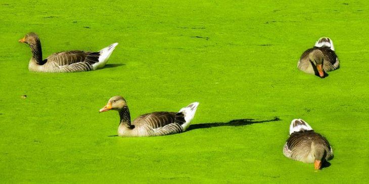 Leider können Sie Enten nicht nur mit Wasserlinsen füttern.Der Pflanze fehlt Vitamin C, das für die richtige Entwicklung der Ente notwendig ist.