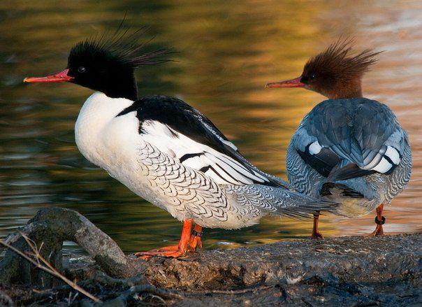 Beschreibung von Wildenten mit einem Kamm und einem scharfen Schnabel, dem Lebensraum von Mergansern