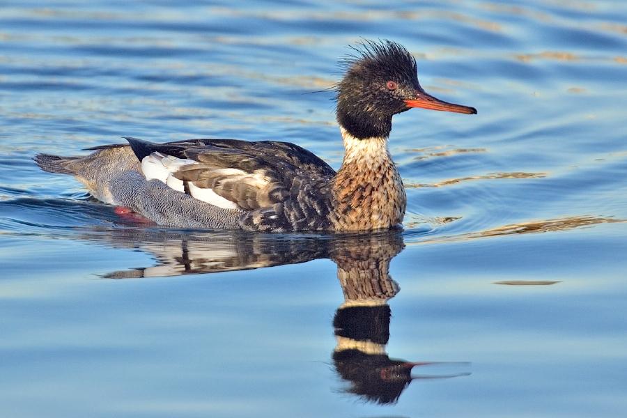 Die Jagd auf Merganser-Enten sieht originell und ungewöhnlich aus. Zuerst sind sie halb im Wasser versunken, suchen nach Beute und tauchen dann und helfen sich mit ihren Schwimmpfoten wie Flossen. Aufgrund dieses Verhaltens werden Merganser-Enten häufig mit Kormoranen verwechselt.