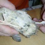 In den meisten Fällen sind Vögel mit Flügelbrüchen konfrontiert. Manchmal kann jedoch das Bein eines Entlein gebrochen sein. Es ist nicht schwierig, eine offene Fraktur zu identifizieren. Es wird selbst einem unerfahrenen Landwirt auffallen. Das Auffinden einer geschlossenen Fraktur kann schwieriger sein. Es wird oft mit Verstauchungen oder Gelenkversetzungen verwechselt. Wenn das Entlein seine Pfote zieht, wird empfohlen, es sofort dem Tierarzt zu zeigen. Eine Röntgenaufnahme ist ebenfalls akzeptabel.