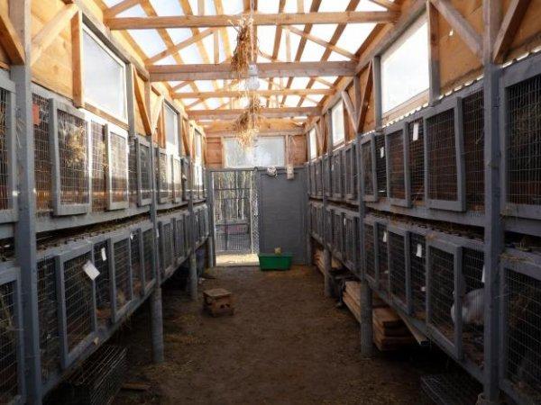 To keep animals, some rabbit breeders build sheds. These are blocks of cells, only located in one continuous row. Each section is separated by a partition. To save space, sheds are made in 2-3 tiers. The length of each individual block for an adult rabbit is 60-90 centimeters, the length of the cage for group keeping of young animals is 1.3 meters. The shed itself consists of several sections fenced off from each other. The length of the structure depends on the number of cells. It can be from 2 to 30 meters or more.