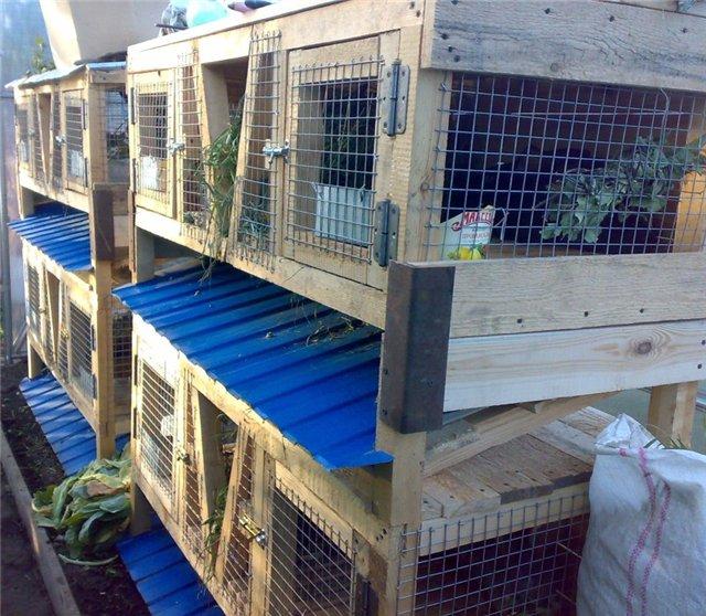 Sheds are special structures for rabbits, in which they can be from the moment of birth until slaughter. These are structures that look like cells arranged in one row. Some sheds have 2 or 3 tiers. The cages are stacked on top of each other to save space. The structure itself is placed indoors or outdoors. It is advisable to build sheds if there are more than ten rabbits on the farm.