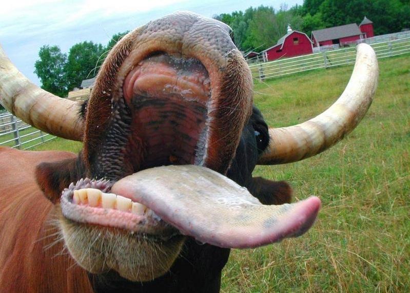 Cattle teeth are strong enamel organs. Lips, tongue, bone plate, and the secretion of the salivary glands take part in the capture, grinding, grinding of feed. Artiodactyls lack incisor teeth and canines. Their functions are taken over by a solid solid bone plate. Therefore, cows seem to be missing upper teeth. Cattle have developed jaw muscles. The lower jaw has more mobility; when chewing food, it moves only clockwise. The top remains motionless.