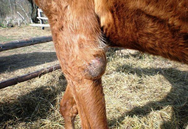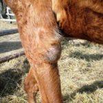 Symptoms of the subacute form are reduced to the appearance of joint inflammation (arthritis) in cows. Knee, carnal and other joints are painful and swollen. The subcutaneous tissue of the extremities, the vaginal mucosa is affected, the udder becomes inflamed. Bursitis and abscesses may form on the hind legs. Sometimes the temperature rises to 37-37.5 aboutbut declines on its own. The subacute form of the disease can last up to three to six months.
