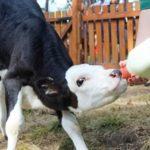 Feed with new foods gradually so that the stomach can get used to unfamiliar food, cut root crops and vegetables into pieces so that the calf can swallow them. In autumn, when frost begins, make sure that cows and calves do not eat frozen grass and wet from dew or rain.