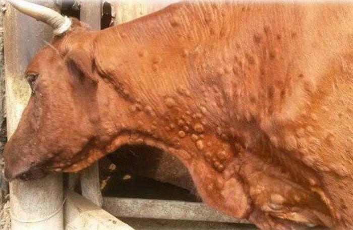 In the most affected areas of the animal's skin, areas of eczema and boils, nodules and hemorrhages appear. Prolonged combing of itchy surfaces against different objects leads to the fact that the livestock develops cellular infiltration - the sweat and sebaceous glands cannot fully function, which affects the work of the whole organism. The situation is aggravated by the fact that multiple pathogenic microorganisms penetrate into cracks and wounds on the animal's skin.