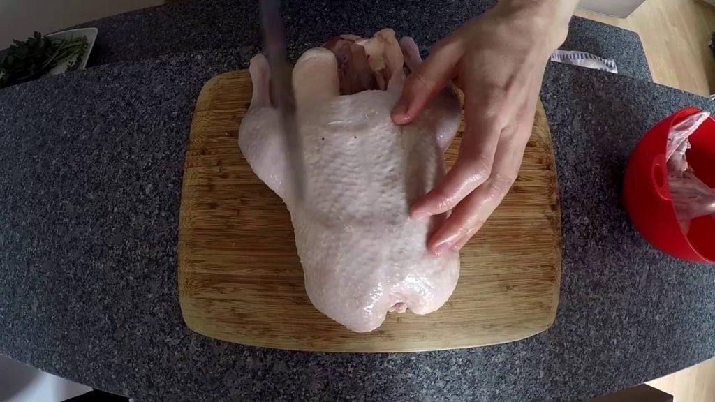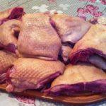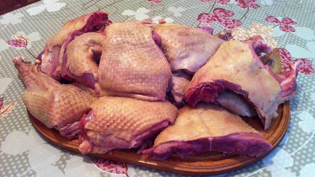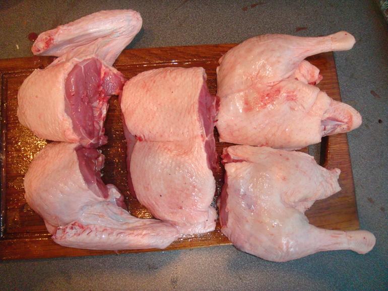 Before cooking, the bird is disassembled into portions. The duck should be butchered with a sharp knife and laid on a board.