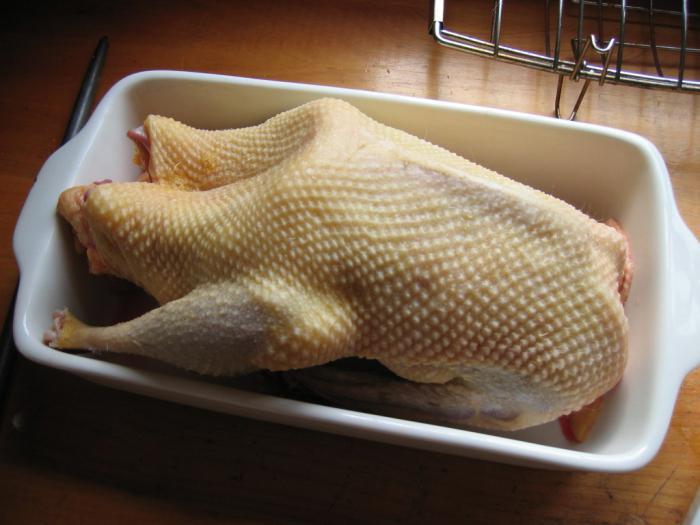 After removing all entrails from the duck, the bird is thoroughly washed. At the same time, you do not need to keep the carcass in water for a long time (the taste of the meat will deteriorate). If in the future it is planned to freeze the bird, it is placed on a net so that it glass and dries.