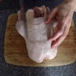 - The hams are separated from the carcass. Turning the carcass with an incision towards you, take the leg to the side. The incisions are made as close to the back as possible. By the same principle, wings are cut off, wielding a knife along the spine.