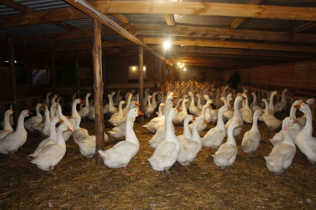 Les maisons sont construites pour les nids, elles peuvent être séparées pour chaque oie ou commune, pour 3-4 nids. Une grande maison nécessite des cloisons denses et opaques.