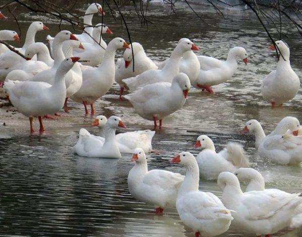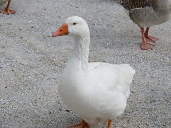 L'apparence de ces oies est due à la race italienne. Tout d'abord, ils se caractérisent par une couleur de cygne blanc. De plus, il se manifeste avec l'âge. Les petits oisons sont couverts de points gris. Dans le même temps, une caractéristique distinctive des oiseaux est la capacité de déterminer le sexe à un jour. Les mâles jusqu'à 2 semaines ont une tache sombre sur le dos.