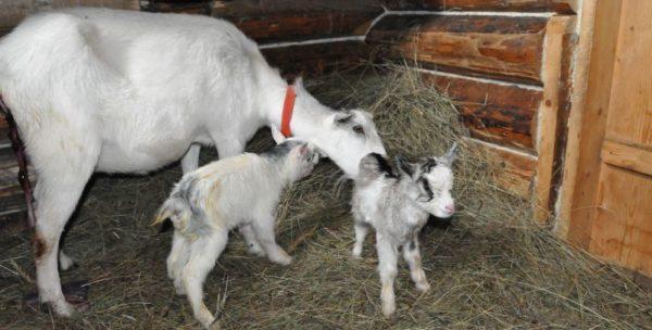 Très souvent, avec une alimentation incorrecte, après le début, l'utérus peut tomber sur ses pieds. Cela est dû à une altération du métabolisme du calcium. Il provoque une faiblesse articulaire non seulement chez les chèvres, mais aussi chez les nouveau-nés. Ils ne se lèvent pas sur leurs jambes pendant longtemps et ne tiennent pas bien sur eux. Une telle pathologie affecte les animaux, dans le régime alimentaire desquels il y avait trop d'aliments succulents avant la naissance.