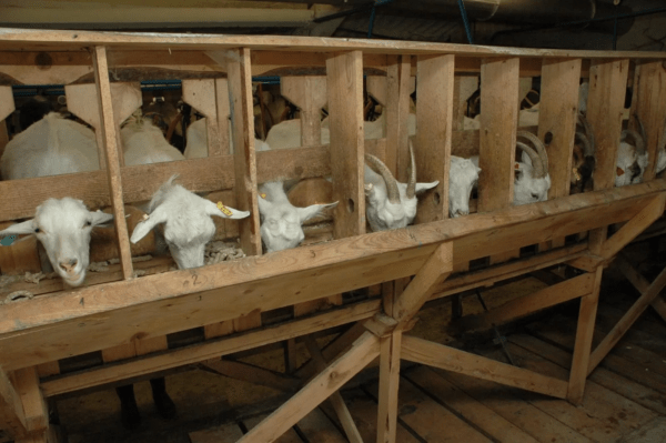 Les aliments conventionnels peuvent être trouvés n'importe où. Et dans ce cas, les chèvres n'ont pas d'endroit spécifique pour manger. Une autre chose est le chargeur. Ainsi, les chèvres s'habitueront à manger dans un coin strictement établi du corral et du fourrage, et beaucoup moins de nourriture liquide disparaîtra. Ne serait-ce que parce qu'il deviendra plus difficile pour la chèvre de la sortir de la mangeoire.