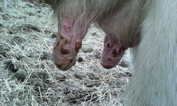 La mammite se développe à la suite de lésions de la peau des mamelons: rayures, ecchymoses. Les chèvres marchent sur leurs propres mamelles si elles sont volumineuses ou les blessent lors d'une bagarre. Les bactéries pénètrent dans les plaies et provoquent une inflammation.