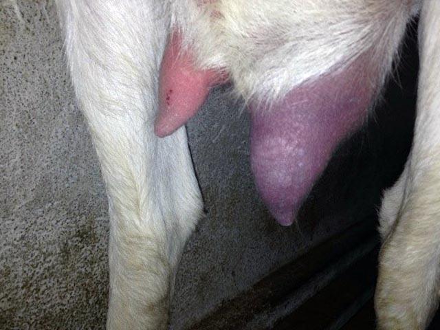 La mammite, ou allaitement, survient chez les chèvres primipares dans les 24 heures ou 30 à 45 jours après l'agnelage. La maladie est unilatérale et couvre un lobe du pis, ou bilatérale, couvrant les deux lobes. Sous l'influence d'une infection bactérienne, un œdème se produit dans les tissus de la mamelle, la circulation sanguine est altérée. La consistance et le goût du lait changent également. Cela devient amer, aigre, transparent.