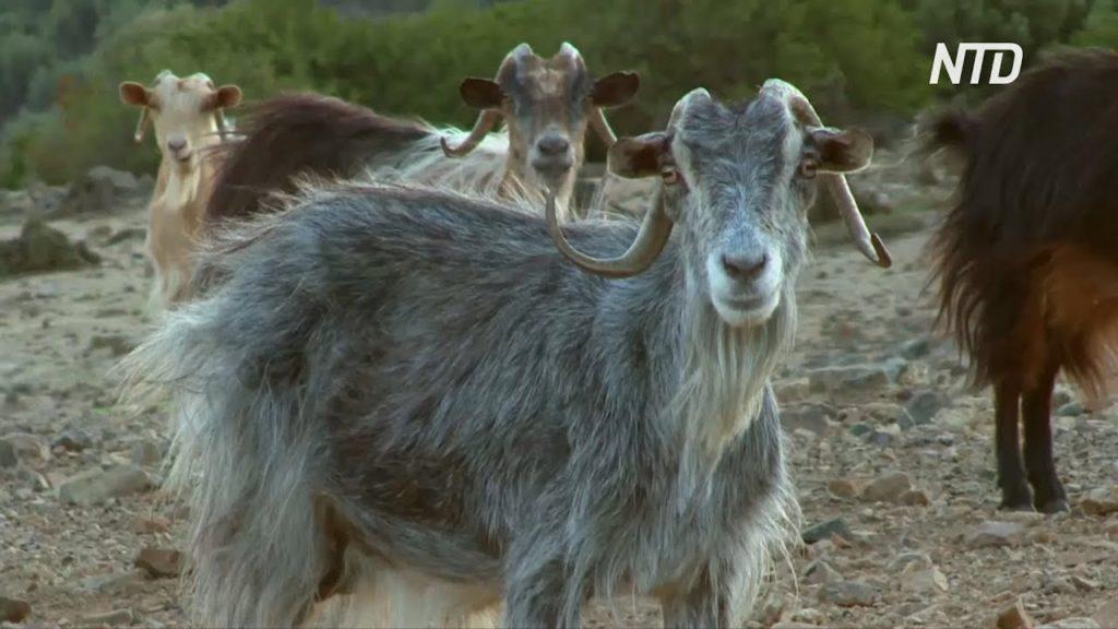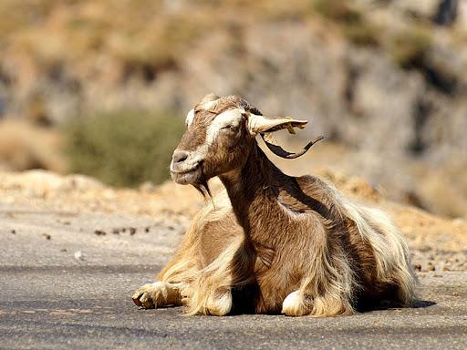 - larges cornes et barbe en spirale chez les mâles;