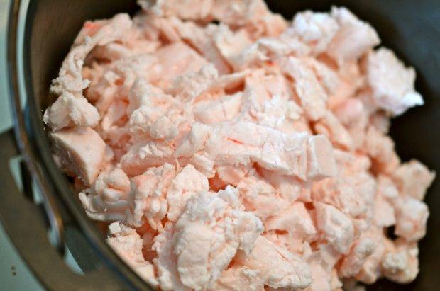 - La matière première est fondue pendant 2 à 4 heures. Les cretons des morceaux doivent rester blancs, ils n'ont pas besoin d'être frits jusqu'à ce qu'ils soient dorés, sinon le produit acquiert une couleur et une odeur désagréables.