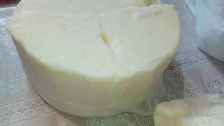 Après solidification, la graisse acquiert une teinte blanche uniforme. Lorsqu'il est coupé avec un couteau, il se brise en morceaux.