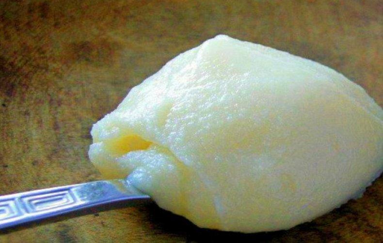 Après refroidissement, la pommade prend une forme traditionnelle, en consistance, elle ressemble à du beurre fouetté épais.