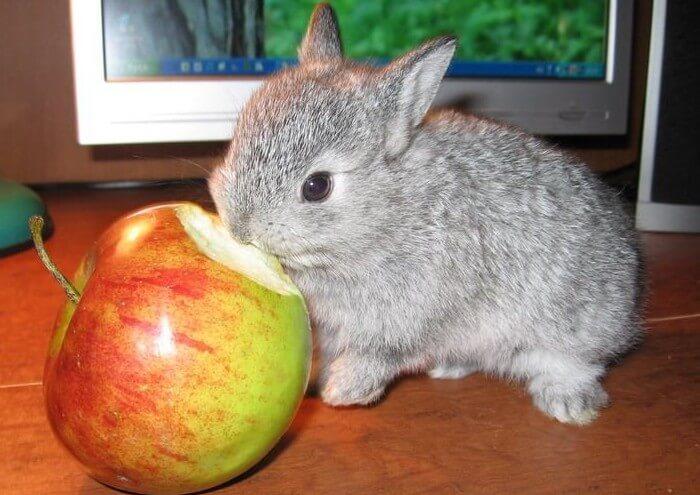 Les lapins broient les fruits avec beaucoup de plaisir, il est difficile de les suivre pour ne pas suralimenter l'animal. Les fruits et les baies ne sont pas l'aliment principal, c'est un complément qui stimule la digestion, aidant à nettoyer les intestins de la laine.