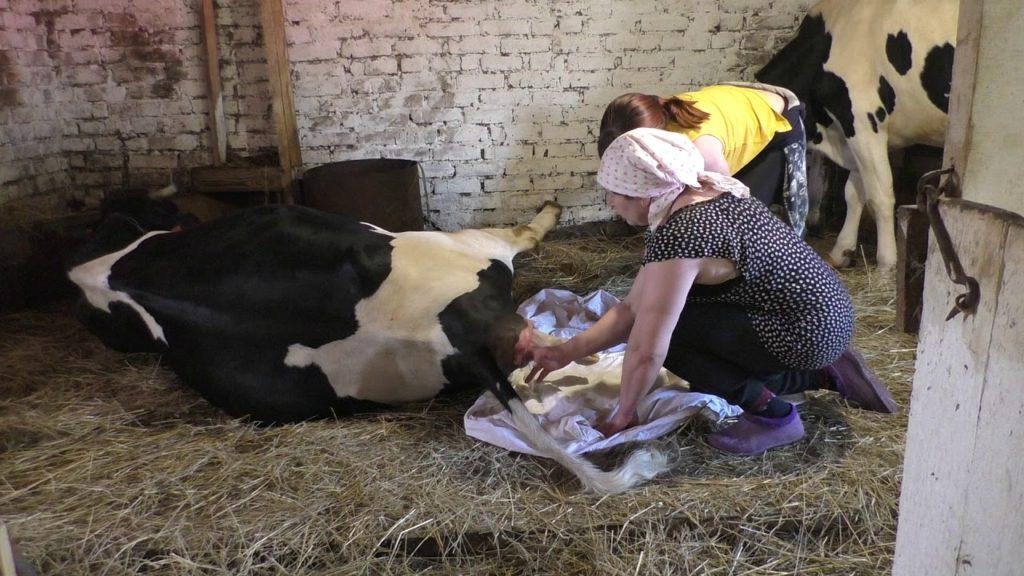 Lors d'un accouchement normal, l'animal n'a pas besoin d'aide. En prévision d'un vêlage rapide, la vache est lavée avec une solution de savon à lessive. La femme en travail est généralement couchée sur le côté, bien que de nombreux animaux qui mettent bas plusieurs fois préfèrent vêler debout.