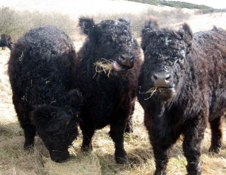 En été, les vaches Galloway sont nourries avec des aliments composés de haute qualité deux fois par jour, mais le régime alimentaire principal consiste en des herbes succulentes, que le bétail consomme au pâturage.