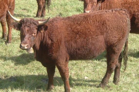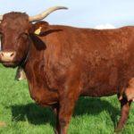La race de viande a été développée au 19ème siècle dans le village français montagneux de Salers. Au départ, les vaches étaient laitières, leur lait était utilisé pour fabriquer le fameux fromage du même nom. Mais les animaux étaient également utilisés comme force de traction, ce qui affectait leur force musculaire. Un taureau adulte atteint 1500 kg, atteint jusqu'à 2 m au garrot. Une vache donne jusqu'à 60 litres de lait par jour.