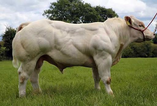 Une race de viande avec un corps si musclé qu'il n'a pas l'air naturel. Les tissus adipeux sous la peau ne sont presque pas formés, de sorte que les animaux peuvent être continuellement élevés en engraissement intensif. Un taureau mange jusqu'à 1300 kg de poids, une vache - jusqu'à 900 kg. La couleur est blanche, bleu clair, noir-bleu ou noir.