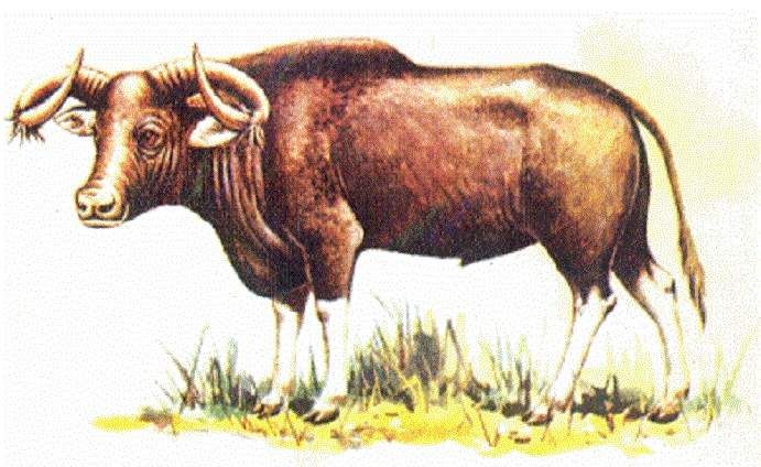 La hauteur du gaura sauvage au garrot atteint 2 m, son poids est de 1500 kg. Le pelage du taureau est brun rougeâtre. Une caractéristique du gaura est sa bosse impressionnante. L'animal meurt rapidement et est inclus dans le livre rouge. Les Gaurs vivent en Inde, au Népal et dans la péninsule malaise.