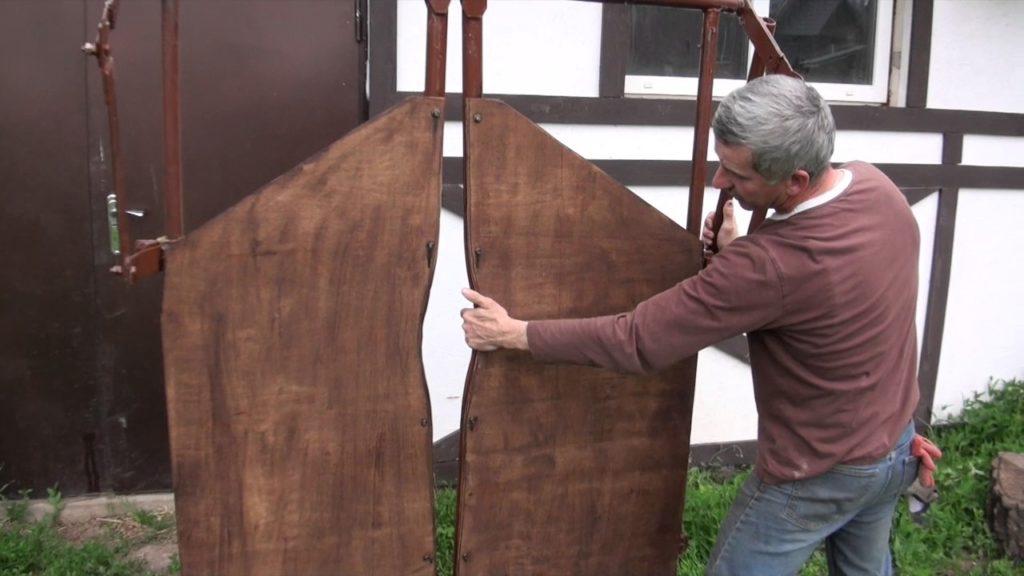 Pour la fabrication d'un appareil métallique, des tuyaux profilés sont utilisés. Une structure rectangulaire en est soudée. Pour la stabilité, la fente est en outre renforcée avec des tuyaux en acier. Les portes d'ouverture sont faites aux extrémités de la scission. La porte arrière se ferme hermétiquement.
