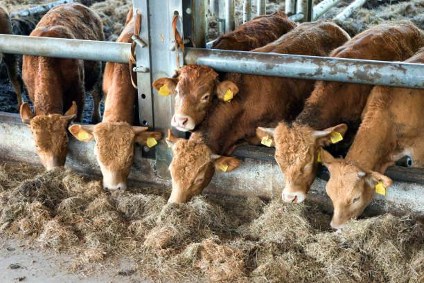 Lors de l'engraissement des animaux d'élevage à l'échelle industrielle, différentes rations sont utilisées (aliments succulents, ensilage, aliments composés, céréales).