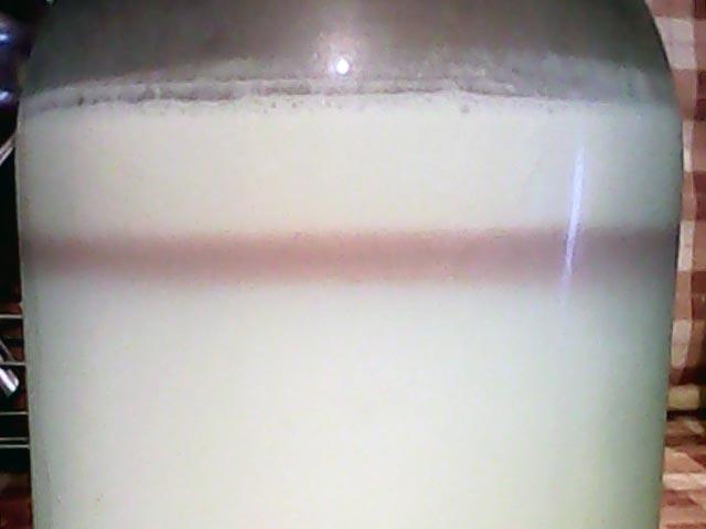 Vous pouvez remarquer ce signe immédiatement, par la couleur de la substance laitière dans une couleur rouge-rose ou après vieillissement au réfrigérateur. Lait avec du sang stratifié en fractions, tandis que le lait normal ne se stratifie pas.